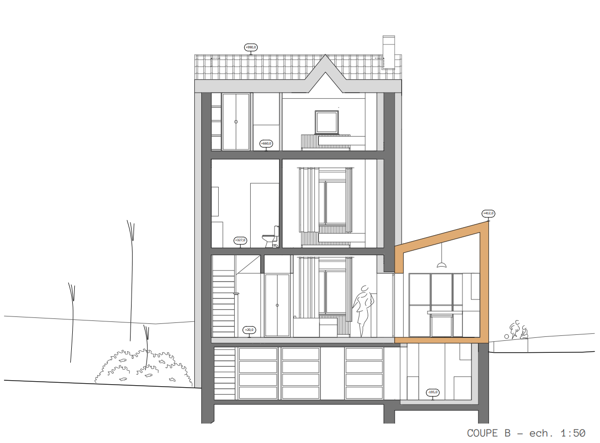 Projet de rénovation d'une habitation en périphérie Liégeoise réalisé dans le cadre du cours d'Atelier II. Le programme contenait, sans s'y limiter :