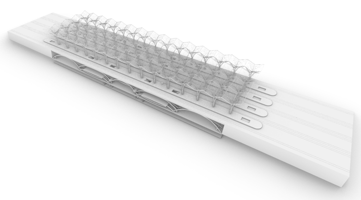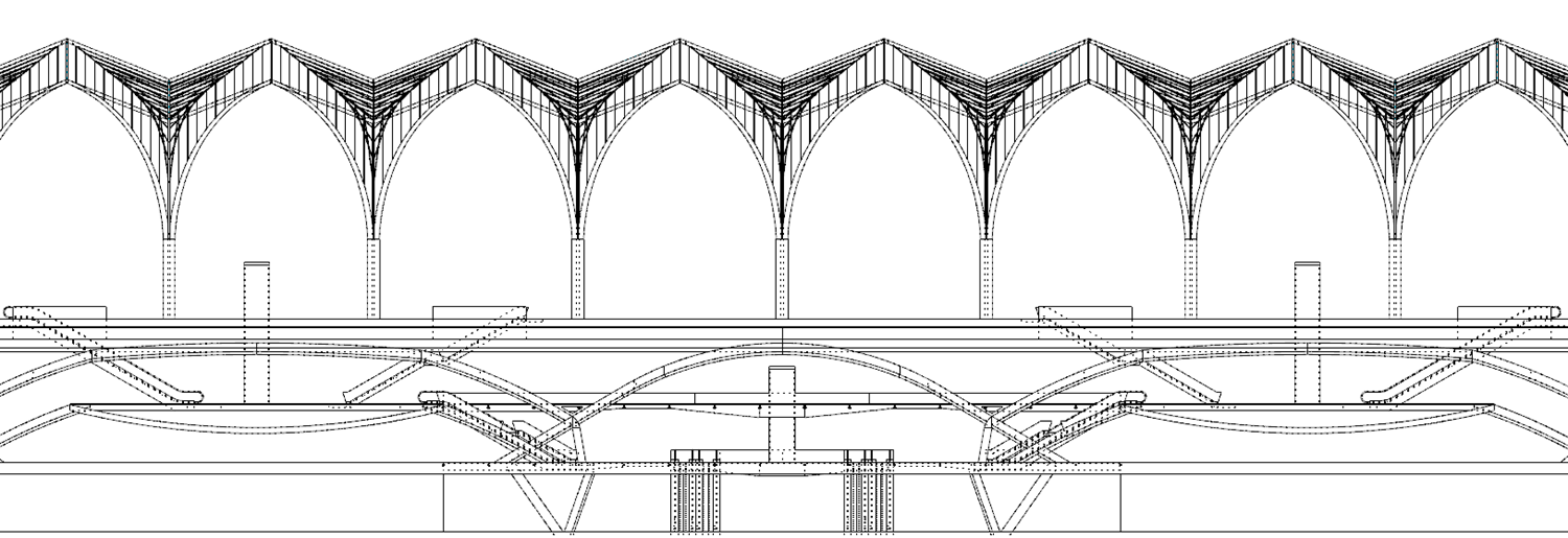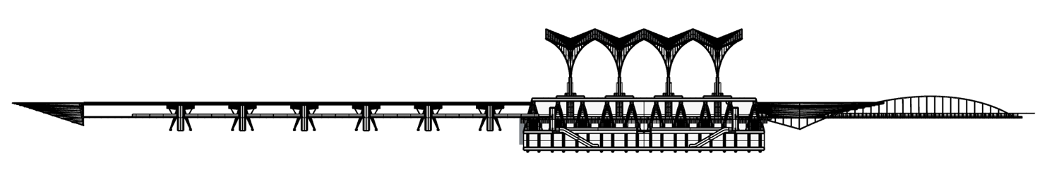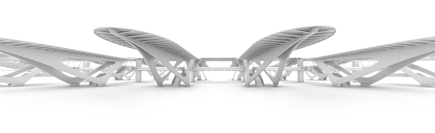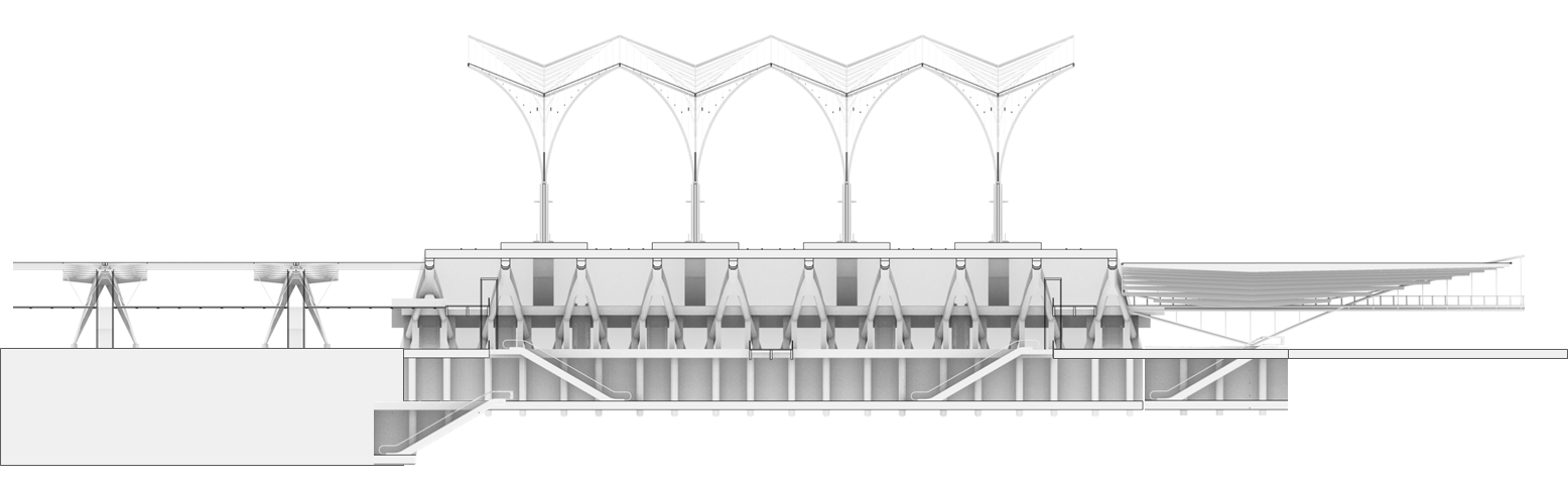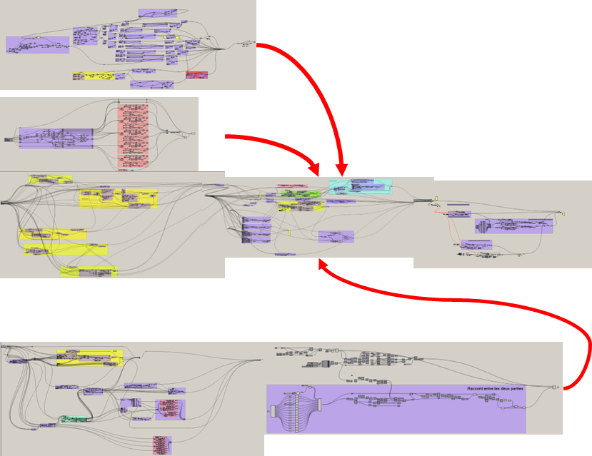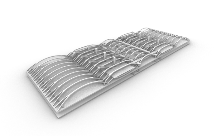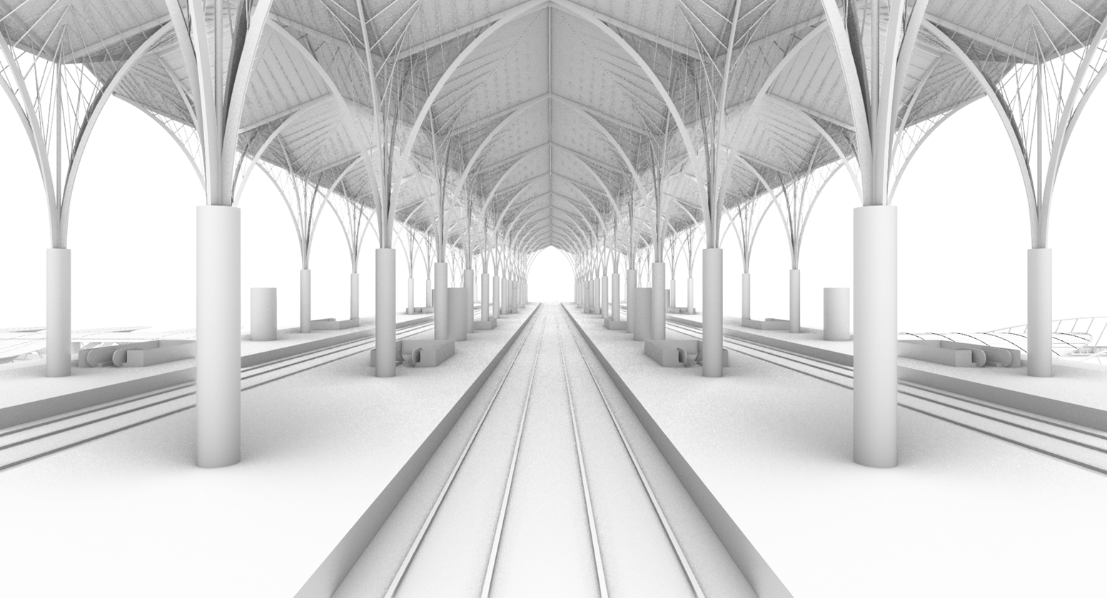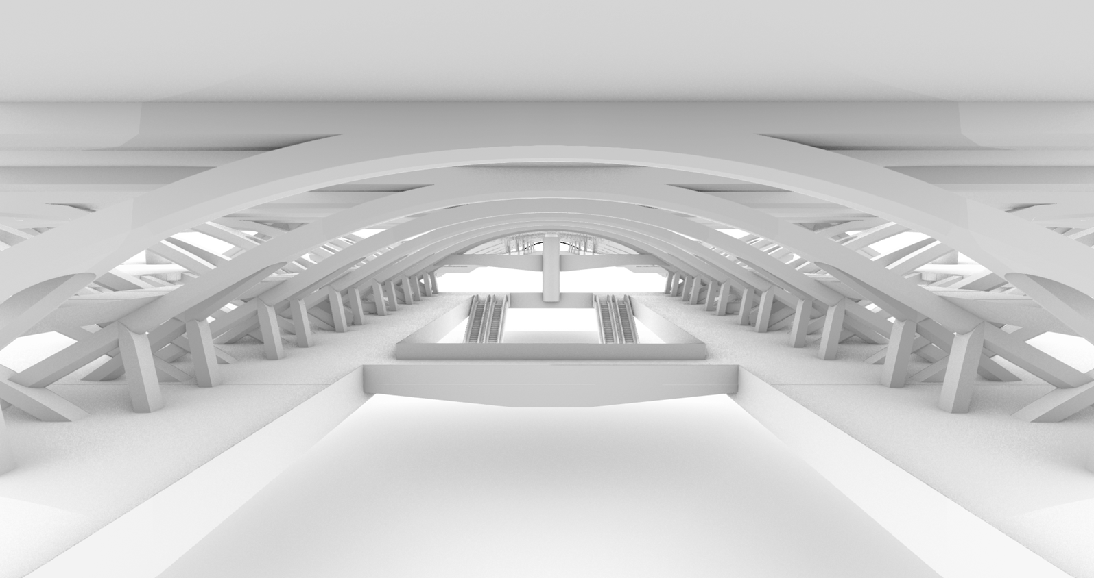 Projet entièrement réalisé sous Grasshopper. L'enjeu était de discrétiser la gare de S. Calatrava en un ensemble de blocs distincs, à instancier afin de créer la station. Avec la maitrise de EleFront, l'ensemble de la gare ne pèse que 25MB une fois les géométries transférées dans Rhino.